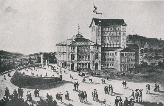 Es gab nun lange Spaziergänge, auf denen wir über dieses Werk, über Bayreuth und mannigfaltige andere Fragen der Kunst sprachen, und wir verstanden uns ausgezeichnet. Einmal nach einer ausgiebigen Wanderung an den Grenzen der Stadt waren wir müde und durstig geworden. Wir sahen in einiger Entfernung ein großes Haus, das im Grünen lag, und gingen darauf zu. Ein Herr empfing uns, als wir durch die Pforte traten, wir fragten, ob wir nicht etwas zu trinken bekommen könnten, und es wurde uns bedeutet, wir möchten nur eintreten, wir bekämen ausgezeichneten Tee, denn wir seien in einem Krankenhaus. Es waren viele Männer da. Es waren Billards da, an denen gespielt wurde, merkwürdig regellos. Manche Männer starrten uns an, andere nahmen keinerlei Notiz von uns. Und auf einmal wurde es uns klar, daß wir – im Bayreuther Irrenhaus waren! Als die Geisteskranken hörten, ein junger Sänger und Komponist aus Wien und ein Professor Nietzsche aus Basel seien da, kamen zahlreiche von ihnen heran und drängten sich um uns. Trotz der Abwehr des Direktors sprachen sie mit uns, erzählten uns allerlei, und da auch Kranke darunter waren, die sich für geistige und künstlerische Genies hielten, wurden wir bedrängt, ihre Werke’ zu würdigen. Ein Kranker, dem der irre Sinn aus den Augen sah, nötigte uns ein Gedicht auf. Nietzsche sollte sein Urteil darüber abgeben, ich sollte es komponieren. Ich besitze das Gedicht des Irren als Erinnerung an jene seltsame Stunde heute noch. Es trägt den Titel: ,Christus als Schmetterlingsrüssel’. Als Nietzsche und ich uns endlich aus dem Kreis der Geisteskranken losgemacht und die Irrenanstalt verlassen hatten, lasen wir auf dem Weg nach der Stadt die wirre Dichtung. Nietzsche meinte: ‚Der Einblick in ein Irrenhaus war doch hochinteressant. Wie entsetzlich und grotesk zugleich, wenn ein Mensch seine geistigen Kräfte verliert!’ Und plötzlich schüttelte ihn ein heftiges Lachen. An die Stunde mit Nietzsche im Bayreuther Irrenhaus habe ich oft zurückdenken müssen, als dann Nietzsche geistig erkrankte ..." Ist auch Nietzsche nach 1876 nicht mehr nach Bayreuth gekommen, so hat doch gerade diese Stadt zwei Marksteine in seinem Schaffen gesetzt. Seine Gabe zum ersten Festspieljahr war ‚Richard Wagner in Bayreuth’, dieser unvergleichliche Hymnus auf den großen Freund, der vielleicht das Schönste enthält, was über Wagner gesagt worden ist. Der empfand es selbst so. "Freund", schrieb er erschüttert als Dank, "Ihr Buch ist ungeheuer!" Und noch an einer anderen Stelle ist Bayreuth mit Nietzsches Werk verknüpft: In der Vorrede zum Zarathustra. Es ist wohl so gewesen, daß Nietzsche einmal, oder vielleicht sogar öfter, mit Cosima und den Kindern in einer der Gassen um die alte Stadtkirche stand und halb schaudernd, halb begierig zusah, wie da droben auf dem Seil zwischen den Türmen einer aus der Seiltänzerfamilie Knie tollkühne Sprünge vollführte. "Und Zarathustra", heißt es in der Vorrede, "kommt in die nächste Stadt, die an den Wäldern liegt, da fand er daselbst viel Volk versammelt auf dem Markt, denn es war verheißen worden, daß man einen Seiltänzer sehen sollte ... Der aber trat aus einer Tür hoch oben auf dem Turm auf das Seil zwischen den Türmen . . ."